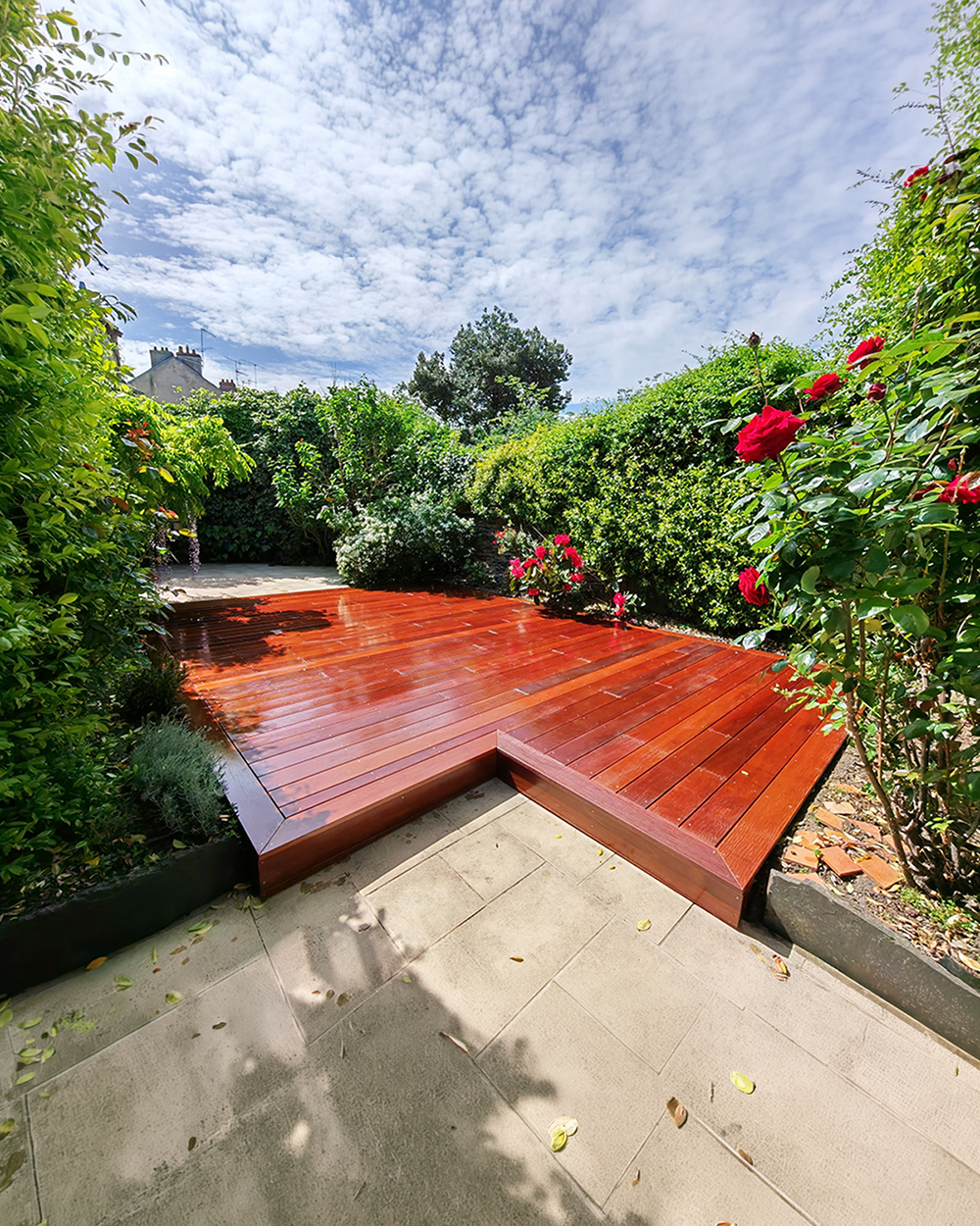 finition lames périphériques terrasse bois exotique Angers rendu esthétique saturé